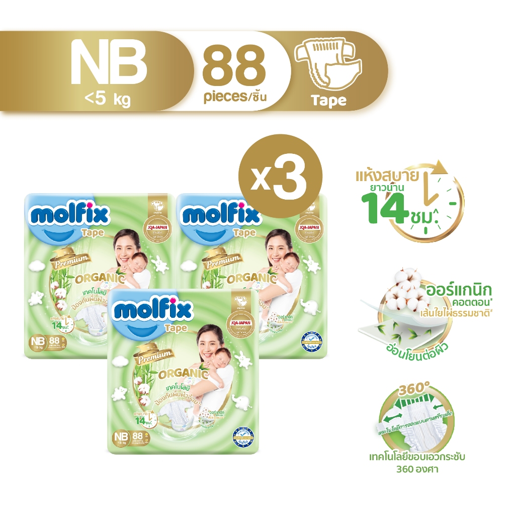 - Molfix Natural Tape NB น้ำหนักน้อยกว่า 5 กิโลกรัม ซื้อยกลังตกแผ่นละ 3.36 บาท (คลิกสั่งซื้อที่นี่ Shopee)