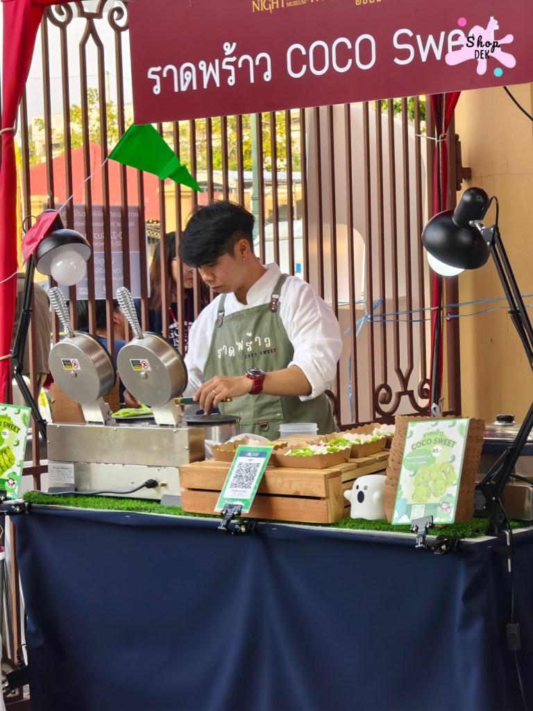 ก่อนเดินงานก็แอบส่องอาหารก่อน ทางพิพิธภัณฑ์มิวเซียมสยามมีร้านอาหารมาออกบูธน่ากินทั้งนั้นเลยค่ะ ไม่ว่าจะเป็นขนมจีนแกงเขียวหวาน, ข้าวหมกไก่, ข้าวเหนียวส้มตำ,เครื่องดื่มต่างๆ เรียงรายอยู่รอบๆ รั้ว ..วันนี้วินเนอร์อิ่มเบาๆ 25 บาท ได้ข้าวเหนียวกับปีกไก่มาครับ