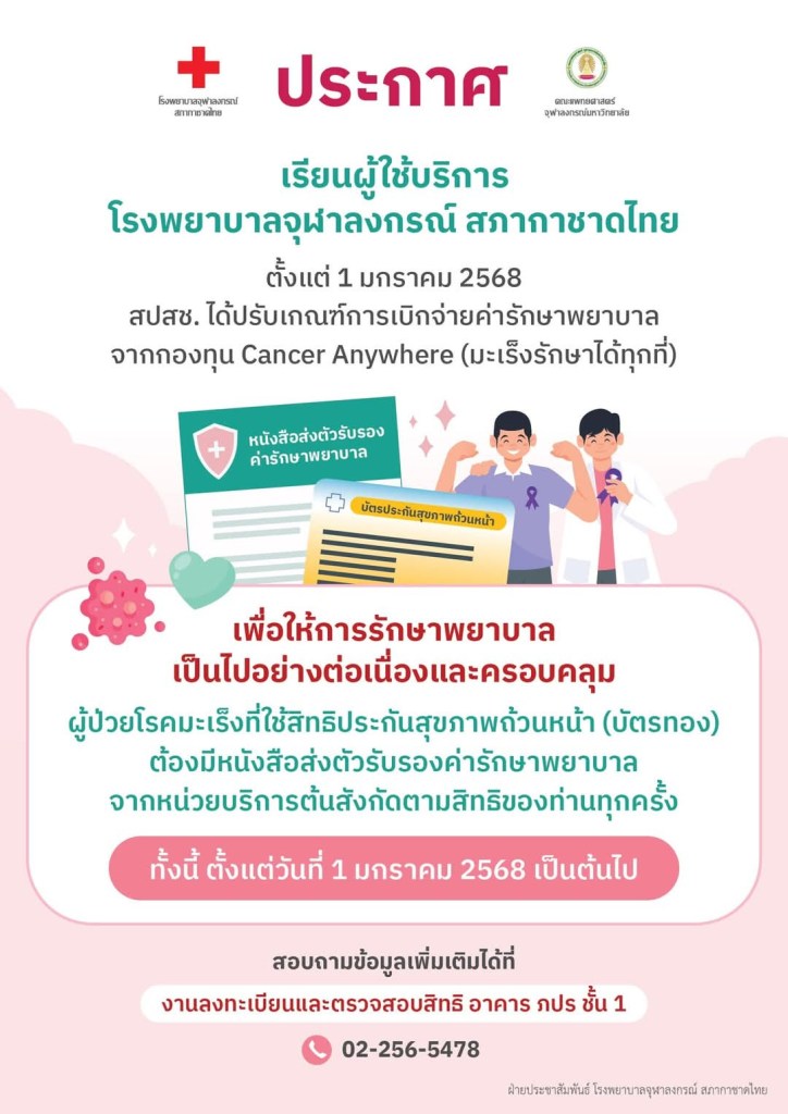 - ‘รพ.จุฬาฯ-ศิริราช’ ปรับเกณฑ์ ‘บัตรทอง’ รักษามะเร็งต้องมีใบส่งตัว… สามารถติดตามต่อได้ที่ : https://www.dailynews.co.th/news/4187211/
