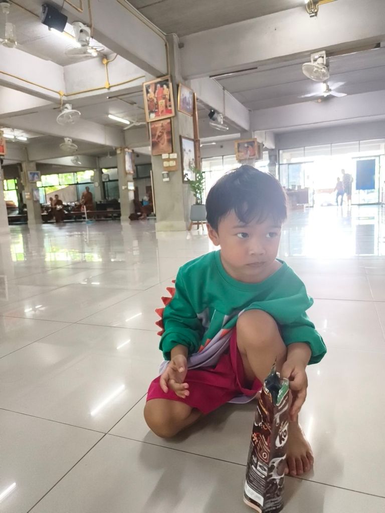 จนล่าสุด ปี 2569/2026 นี้ พี่กรก็มาบวชอีก บรรพชาเป็นเณรอีกพรรษานึง แม่เห็นภาพน้องทางเพจก็ลองมาสอบถามกับทางพระอาจารย์ดูว่าน้องวินเนอร์สามารถบวชเณรได้หรือยัง สรุปคือน้องยังเล็กไปค่ะ ต้องดูแลช่วยเหลือตัวเองได้ก่อน ข้อมูลคร่าวๆ ระหว่างมาเรียนปฏิบัติธรรมคือ น้องๆ จะได้เรียนรู้หลักกรรมฐาน กินนอนในวัด ฉันวันละมื้อ ระยะเวลา 1 พรรษาเต็มๆ