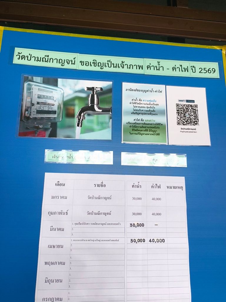 ระหว่างสนทนากับพระอาจารย์ก็มีลูกศิษย์ลูกหาวัยประถมพร้อมกับผู้ปกครอง เตรียมเครื่องสังฆภัณฑ์สำหรับบวชพระใหม่ ค่าอัฐบริโภค อาหาร จีวร และบาตร ทั้งหมดได้รับการสนับสนุนจากผู้มีจิตศรัทธาที่ร่วมบริจาคด้วยความสมัครใจ ทางวัดไม่เรียกเก็บค่าใช้จ่ายใดๆ จากผู้เข้าร่วมโครงการ หากคุณพ่อคุณแม่มีจิตศรัทธาอยากพาเด็กๆ ที่บ้านมาร่วมทำบุญก็สามารถเดินทางมาได้ที่วัดป่ามณีกาญจน์ หรือบริจาค E-Donate ได้จาก QR Code ด้านล่างนี้