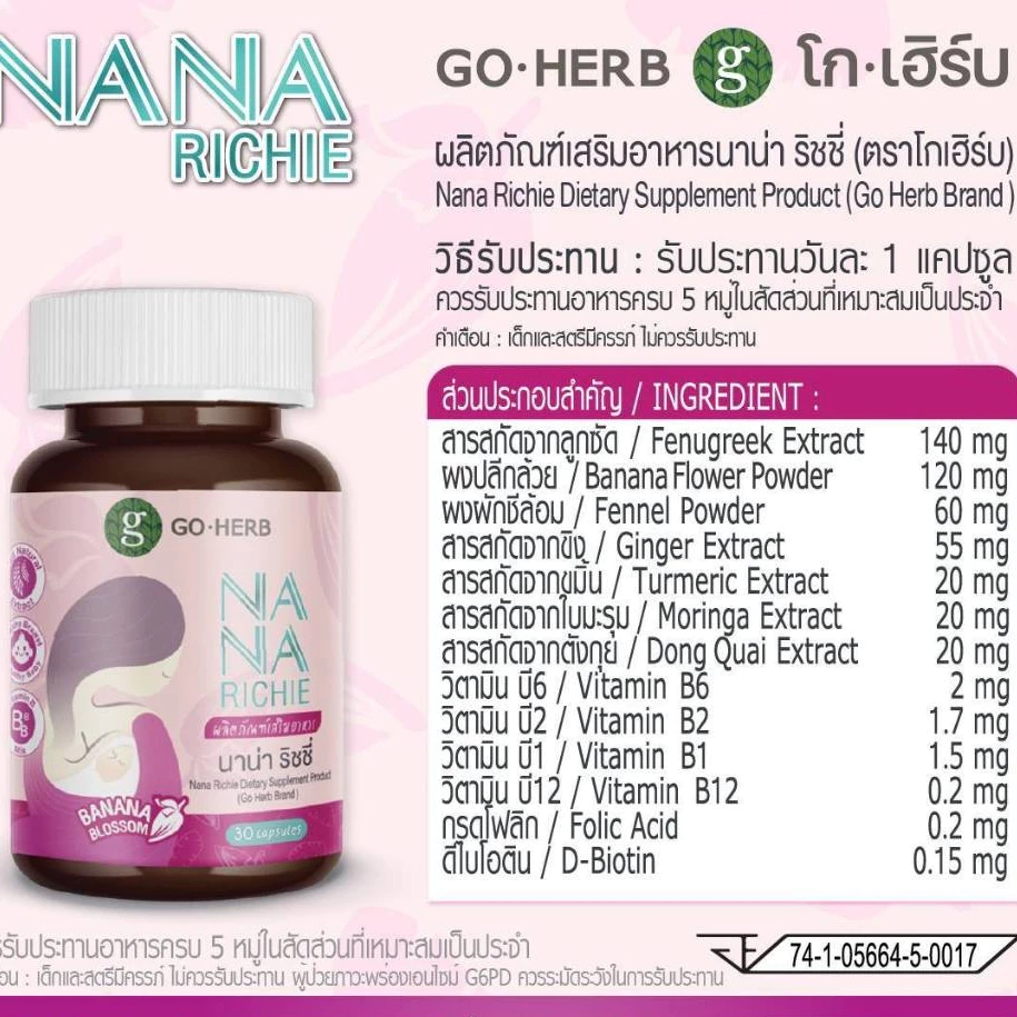 Nana Richie ผลิตภัณฑ์เสริมอาหาร บำรุงน้ำนม นาน่า ริชชี่ 10 แคปซูล/30 แคปซูล